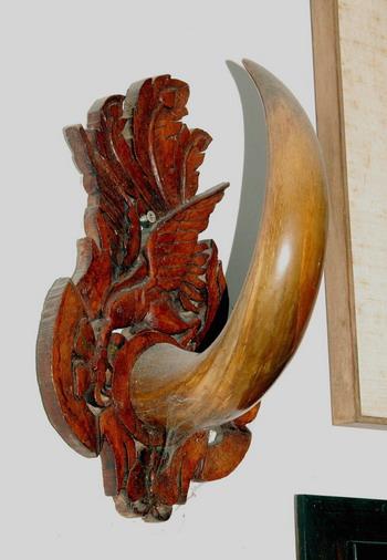 แป้มไม้แกะสลักรูปนก ติดเขาวััว