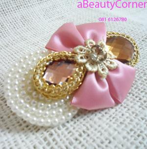เครื่องประดับผม / กิ๊บประดับผม โบว์ชมพู ประดับไข่มุก เพชรกลาง