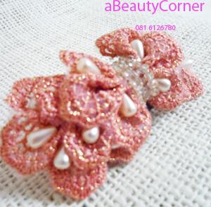 เครื่องประดับผม / กิ๊บประดับผม โบว์ชมพู ประดับเพชรและไข่มุก สวยมาก