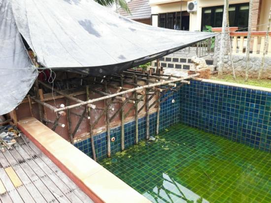 | คำอธิบาย : งานปรับปรุงสระว่ายน้ำ เปลี่ยนกระเบื้อง เพิ่มจากุชชี่ |