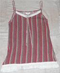 ลายแนวดอกไม้ สีแดง แต่งลูกไม้คอเสื้อและชายเสื้อ Size S ตามป้าย AIIZ มีโบว์ปลาย แต่งด้วยลูกปัดไม้ ผ้าใส่สบายมาก สภาพดีและใหม่มาก