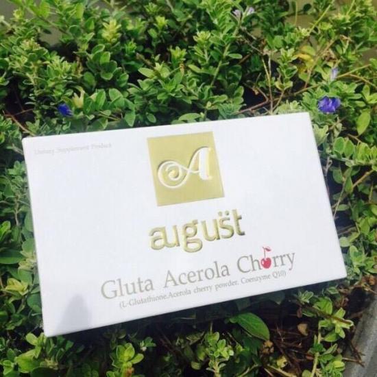 August Gluta Acerola Cherry สามารถดูดซึมได้ดีมากๆ ย่อยสลายได้เร็วมากๆ ไม่มีรสเหม็น หรือขม จะมีกลิ่นหอมผลไม้ ด้วยส่วนผสมหลักคือ อะเซโรลาเชอร์รี่ ที่ราคาแพงมาก เพราะเป็นผลไม้ที่พบแล้วว่า มีวิตามินซีที่สูงที่สุด และรองลงมาเป็นมะเขือเทศ ที่เทียบเท่าการทานมะเขือเทศ 15-20 ลูก และส่วนผสมอีกมากมาย ที่ช่วยในเรื่องความขาวใส สิว ฝ้า กระ และจุดด่างดำดูลดลง