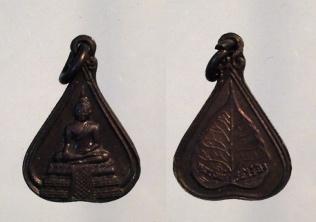 หลวงพ่อวัดไร่ขิง พิมพ์ใบโพธิ์ เล็ก หลังรูปใบโพธิ์ เนื้อทองแดง