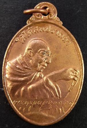 เหรียญไหว้ข้างพระครูอดุยคุณาธาร (หลวงพ่อหวน) วัดนิคมประทีป(โคกหล่อ) ตรัง ครบรอบ ๘๐ ปี เนื้อทองแดงผิวไฟ