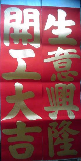 เขียนด้วยตัวอักษรสีทอง บนกระดาษแดง สวยงาม ขนาด 8" x 32"