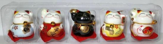 แมวกวัก แมวนำโชค สูง1.5นิ้ว ชุด 5 ตัว [catset-s2]