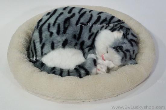 ตุ๊กตาแมว นอนหลับ หายใจได้ (ใส่ถ่าน) สีเทาลายดำ