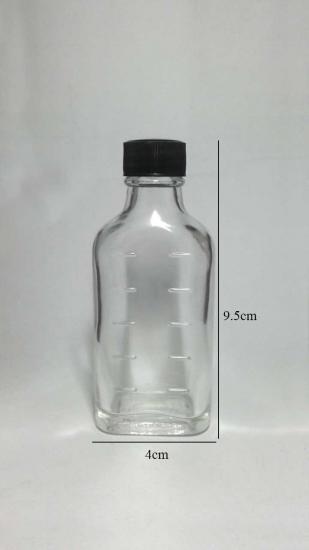 ขวดแก้วแบน มีขีด ขนาด30cc ฝาพลาสติกดำ laugh1กล่องมี280ใบ ราคาพร้อมบริการจัดส่งกล่องละ1050บาท.