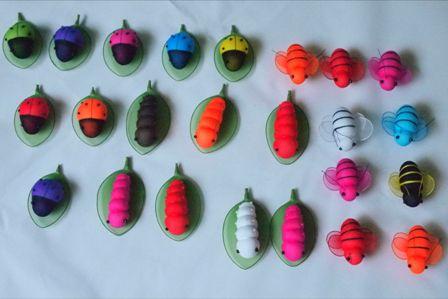 เป็นสินค้าทำมือ เช่น แมงปอ ผีเสื้อ หนอน แมลงเต่าทอง ผึ้ง