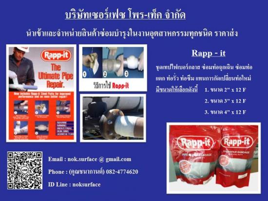อุปกรณ์ซ่อมท่อฉุกเฉิน Rapp-it ทำจากผ้าไฟเบอร์กลาสเคลือบด้วยโพลียูริเทนเรซิ่นที่พร้อมใช้งานทันทีเมื่อแกะห่อ เมื่อแกะ Rapp-it และนำไปชุบน้ำประมาณ 10 วินาที หลังจากนั้นนำไปพันบริเวณท่อที่ได้รับความเสียหาย Rapp-it จะค่อยๆ แข็งตัวและสามารถใช้งานได้ภายใน 30 นาที Rapp-it มีความจำเป็นมากและคู่ควรแก่การเก็บเป็นสต็อค เพราะไม่มีใครรู้ว่า จะเกิดเหตุ ฉุกเฉินขึ้นมาเมื่อใด ใช้ซ่อมท่อต่างๆ แทนการตัดเปลี่ยนท่อใหม่ ประหยัดงบประมาณ ทนอุณหภูมิได้ถึง 150 องศาเซลเซียส