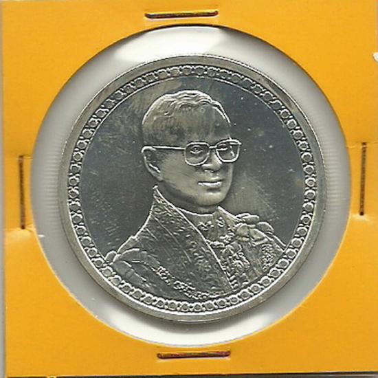 ด้านหน้า : กลางเหรียญมีพระบรมรูปพระบาทสมเด็จพระปรมินทรมหาภูมิพลอดุลยเดชผินพระพักตร์ทางเบื้องซ้าย ทรงฉลองพระองค์เครื่องแบบเต็มยศจอมทัพฉลองพระองค์ครุยมหาจักรีบรมราชวงศ์ทรงเครื่องขัตติยราชอิสริยาภรณ์อันมีเกียรติคุณรุ่งเรืองยิ่งมหาจักรีบรมราชวงศ์ และสายสร้อยจุลจอมเกล้า ริมขอบเหรียญโดยรอบประดับด้วยลายรูปเพชรร้อยเรียงกันจำนวน ๖๐ เม็ด
