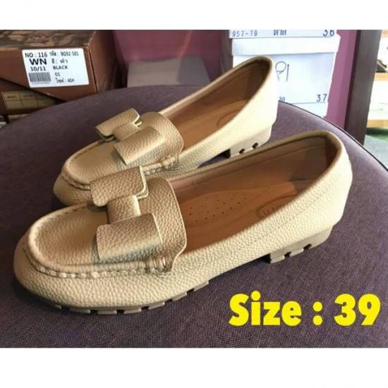 รองเท้าหนังสีครีม ขนาดเบอร์ 39 (ใส่ได้ทั้ง 39 และ 40)