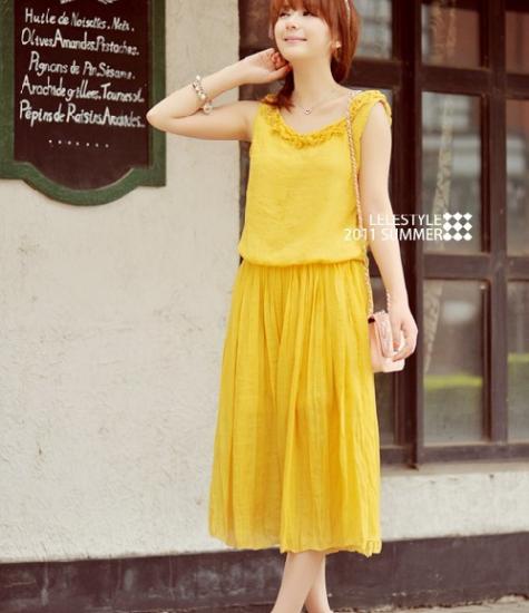 *พร้อมส่ง* ชุดเดรส Maxy dress แบบน่ารัก สีเหลือง (dressuphouse รหัส 339y)