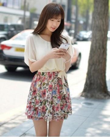 *พร้อมส่ง* ชุดเดรสเสื้อชีฟอง สีขาว กระโปรงลายดอกไม้น่ารัก (dressuphouse รหัส 361)