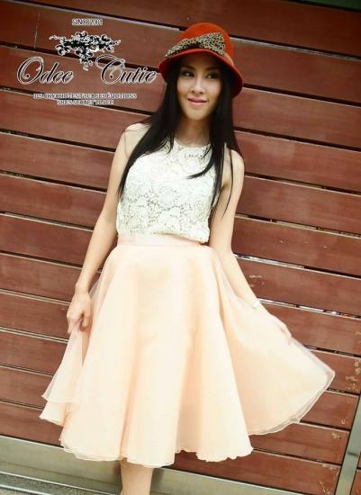 ชุดเซตเสื้อลูกไม้ถัก กับกระโปรงบานผ้าแก้ว (LR932)
