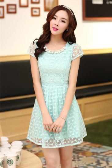 Home / All Product List / dressuphouse รหัส 1420 ชุดเดรสกระโปรงสีฟ้า แต่งมุกและเพชรที่คอ |