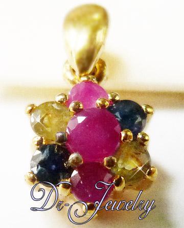 รูปทรงดอกไม้ รวมพลอยไว้หลายชนิด ทับทิม,ไพลิน,เขียวส่อง