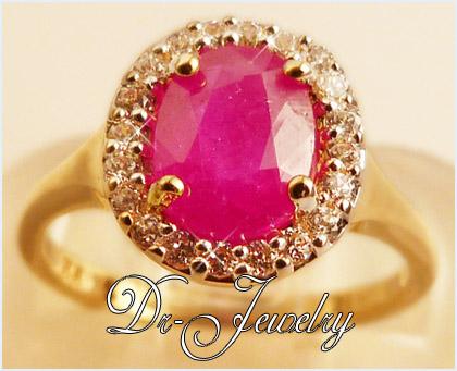A131 - แหวนพลอยทับทิมแท้ ล้อมเพชร
