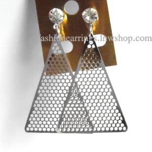 Home / All Product List / ต่างหูแฟชั่นสามเหลี่ยม น้ำหนักเบา โทนสีเงิน |