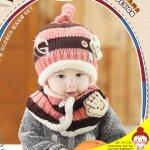 หมวกเด็กเล็ก ใหมพรมขนฟูกันหนาว GongZHUMAMA ลายเบสบอล (สีชมพู คาดสีเทา)