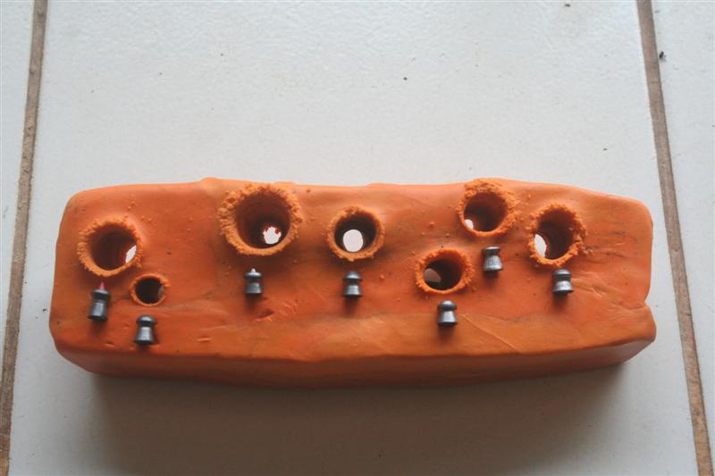 ยิงดินน้ำมันความหนาประมาณ 2 นิ้ว ทะลุทุกเม็ด แต่รูเข้า-ออก ดูเอาเอง (ทดสอบด้วยปืน Crosman Doomsday ปั๊ม 10 ครั้ง ระยะ 10 เมตร)
