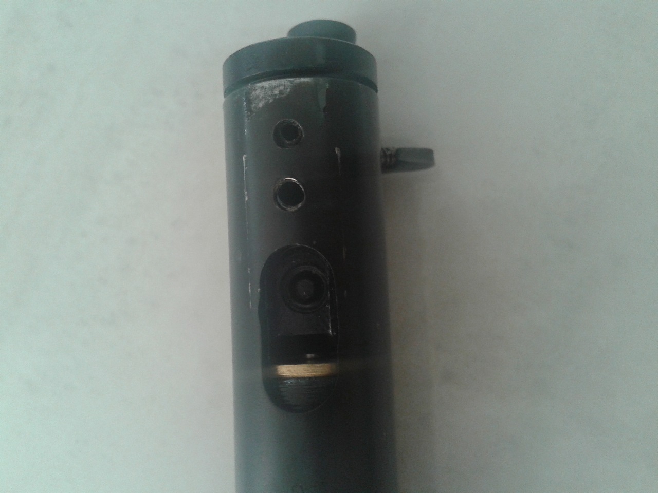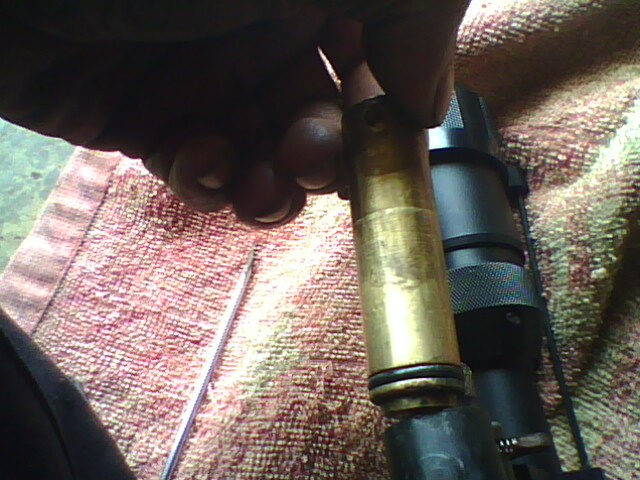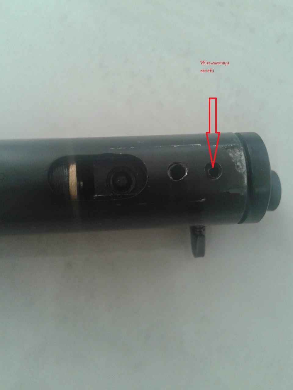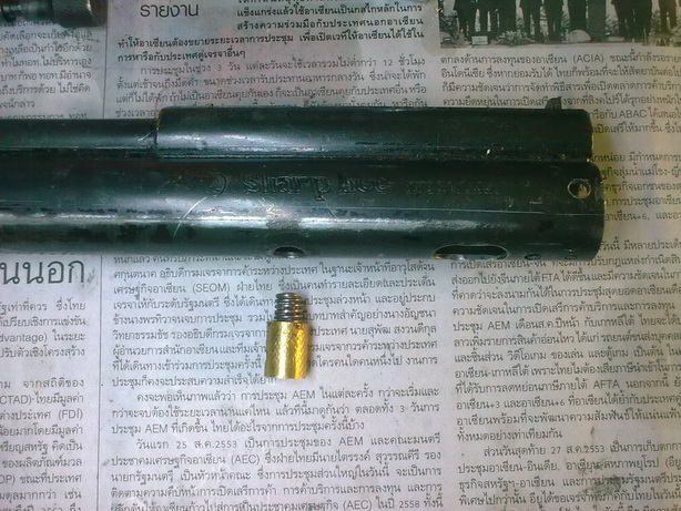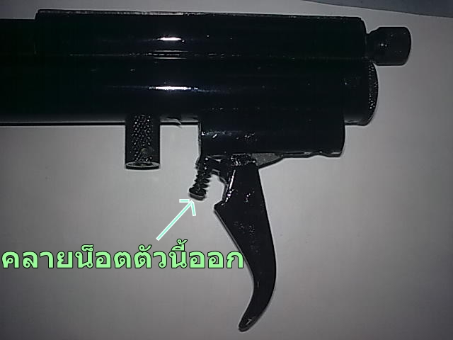 -ต่อไปก็เอาน็อตยึดลูกเก็บลมออก ตัวเดียวกับที่ยึดด้ามท้ายเข้ากับกระบอกปีนแหละครับ