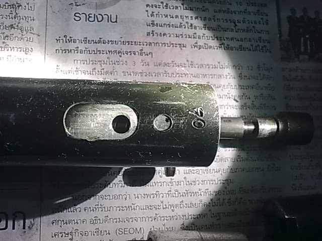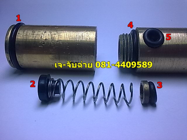 5.ตัวนี้ทำหน้าที่บังคับให้ลมวิ่งไปดันกระสุนครับ กั้นลมไว้ไม่ให้ออกไปทางอื่น เวลาเหนี่ยวไกแล้วลมจะลอดผ่านโอริง3 มาออกทางโอริง5 แล้วขึ้นไปดันกระสุนในลำกล้องด้านบน