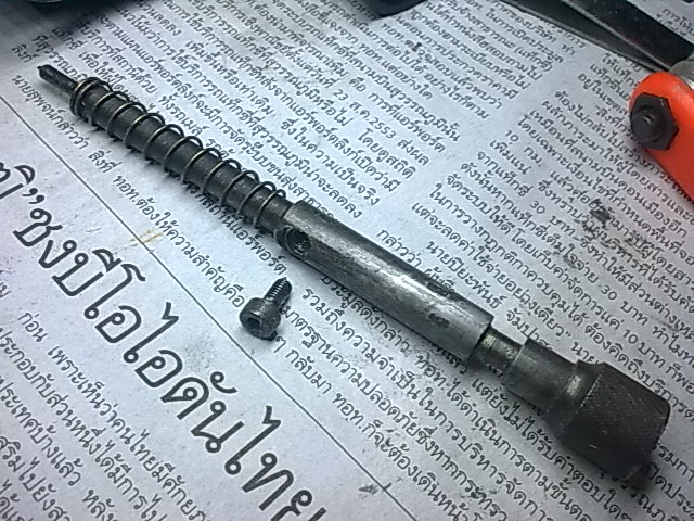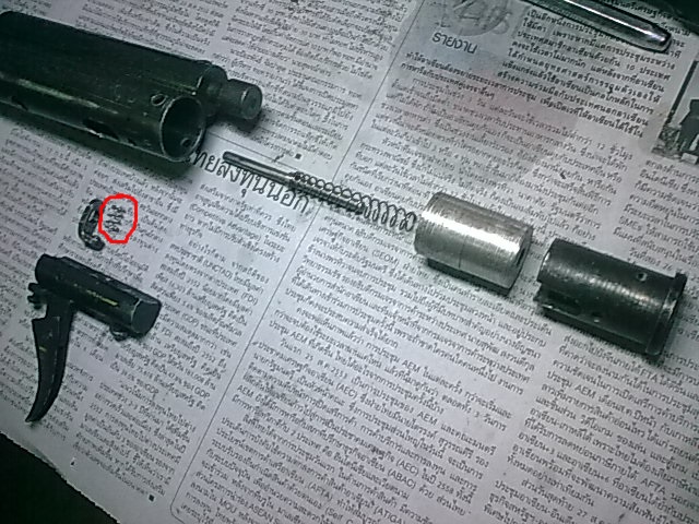 แกนดันกระสุนจะมีน็อตล็อคอยู่ 1 ตัวนะครับ ก่อนอื่นก็ถอดชิ้นส่วนตาม คห.ที่1 ครับ