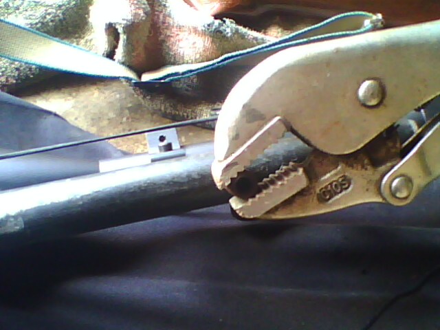 ส่วนอีกด้านก็เอาคีมคอม้าจับ หรือคีมอะไรก็ได้ที่ใหญ่หน่อย (ในรูปคีมเล็กไปหน่อย แฮะ แฮะ )