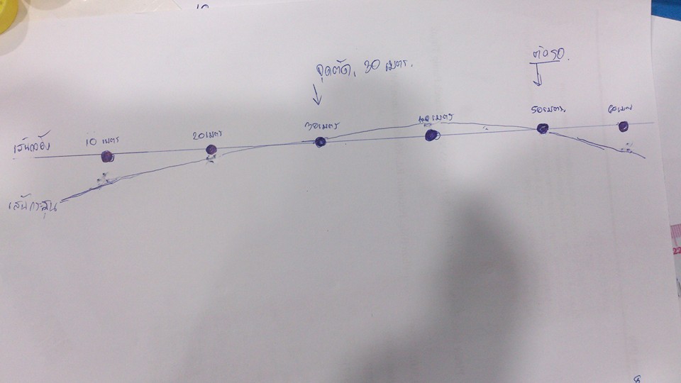 โดยกำหนดระยะจุดไว้อาจจะ 10 20 30 40 50 เมตร หรือถ้าขยันหน่อยก็ 10 15 20 25 30 35 40 45 50 ก็ได้ครับ โดยที่จุดต้องมีความสูงเท่ากัน