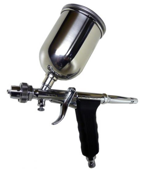 -มีวงแวนสำหรับหมุนปรับหัวเข็มพ่น สำหรับควบคุมความละเอียด ถูกออกแบบมาเพื่องานที่ละเอียดมากๆ ซึ่งดูได้จากถ้วยสีจะทำมุมในแนวราบเพื่อสามารถใช้งานได้อย่างสะดวกและไม่เกะกะ