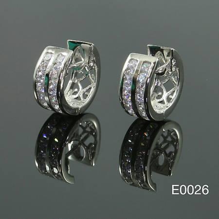 ต่างหู เพชร แบบห่วง 2 แถว ชุบทองคำขาว