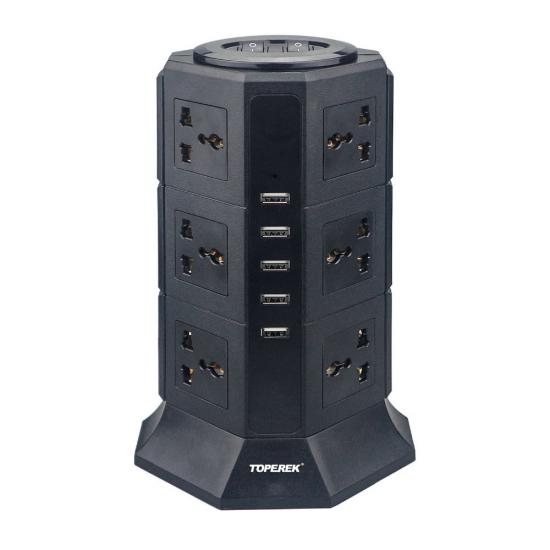 ปลั๊กไฟคอนโด 12 เต้ารับ กระแส 15A, 3,300 Watt มาพร้อมกับพอร์ต USB สำหรับชาร์จโทรศัพท์มือถือจำนวน 5 พอร์ต ความยาวสาย 3 เมตร (สามสายใน) ออกแบบมาเป็นพิเศษเพื่อความปลอดภัยในการใช้งาน มีสายดินเพื่อป้องกันอันตรายจากไฟรั่วไฟดูด และอุปกรณ์ป้องกันสัญญานรบกวนและตัดวงจรกรณีใช้ไฟเกินพิกัด