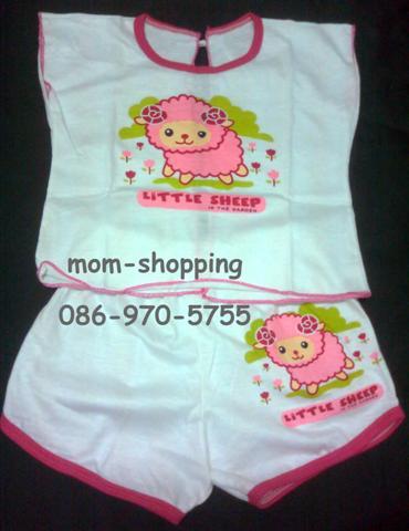 เสื้อผูกหลัง +กางเกง (แขนสั้น) ผ้า cotton ลายสวนสัตว์ (แพ็ค 6 ชุด)