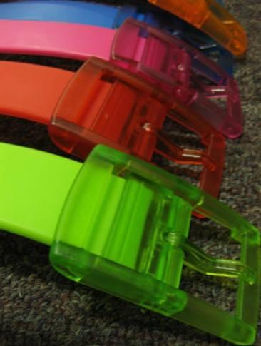 หัวเข็มขัดเป็นพลาสติก สีสันสดใส มีให้เลือกมากกว่า 24 สี แดง เขียวแก่ เขียวตอง ส้ม ฟ้าอ่อน ฟ้าเข้ม น้ำเงิน เหลือง ขาว ดำ เทาอ่อน ชมพูโอรส น้ำตาล ชมพูบานเย็น ม่วงเข้ม ม่วงอ่อน ชมพูอ่อน