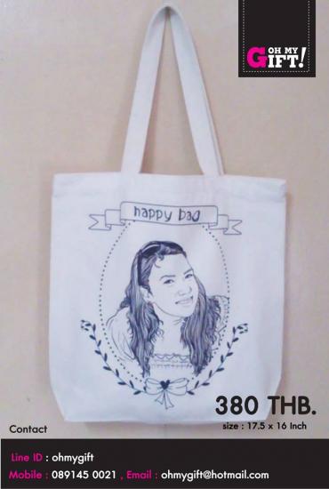 ภาพวาด Portrait (ลายเส้น) พิมพ์ลงกระเป๋าผ้าแคนวาส
