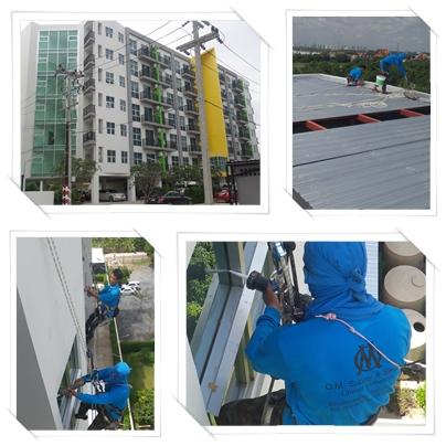 งานโรยตัวเช็ดทำความสะอาดภายนอกอาคาร, งานติดตั้งวัสดุอุปกรณ์ต่างๆ ภายนอกอาคาร, งานติดป้ายโฆษณาต่างๆ , งานทาสีต่างๆ , งานติดตั้งและเปลี่ยนหลอดไฟ สปอร์ตไลท์ LED ภายนอกอาคาร, งานเปลี่ยนติดตั้งสายล่อฟ้าภายนอกอาคาร, งานติดตั้งวัสดุไล่นกแบบต่างๆ