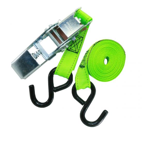 สายรัดเฟืองเกียร์พร้อมตะขอ 2.5ซม.X4ม. RATCHET TIE DOWN S-HOOKS (สีเขียว)