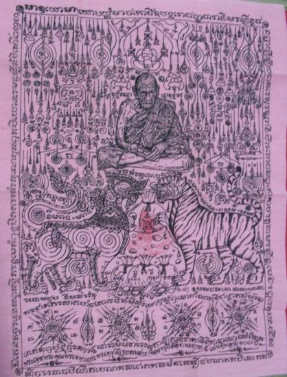 ผ้ายันต์สิงห์ป้อนเหยื่อ เสือคาบเงิน หลวงปู่เปลื้อง วัดลาดยาว นครสวรรค์