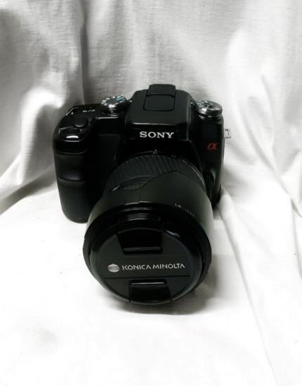 กล้อง DSLR Sony A100 เป็นกล้อง Mid-size ระดับกลาง DSLR สภาพกล้องดีเยี่ยม ใช้น้อย ส่วนใหญ่เก็บเอาไว้ในตู้กันชื้นเท่านั้น ความละเอียด 10 ล้านฟิกเซล จำนวนจุดโฟกัส 9 จุด ขนาดหน้าจอแสดงผล LCD 2.5 นิ้ว เมมโมรี่เป็นแบบ CF card พร้อมเลนส์ Minolta 18-200mm F3.5-6.3 เป็นเลนส์ใช้ตัวเดียวเที่ยวไปได้ทั่วโลกไม่ต้องพกเลนส์ไปหลายตัว ได้ตั้ง แต่มุมกว้างไปถึงระยะเทเลซูม ตัวเลนส์ยังสามารถนำไปใช้กับกล้อง Mirror less Sony ได้โดยต่อกับอแดปเตอร์ LAEA ตัวฟังส์ชั่นแสดงค่าต่าง ๆ เป็นภาษาอังกฤษ เมนูเป็นภาษาญี่ปุ่น อุปกรณ์ครบทั้งสายชาร์ตและแบต
