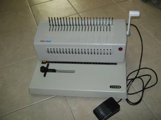 เป็นเครื่องเจาะเอกสารแบบไฟฟ้า และเข้าเล่มเอกสารโดยใช้คันโยก เข้าเล่มเอกสารโดยใช้สันห่วงพลาสติกขนาดต่างๆ ตั้ง แต่ 6 มม. ถึง 50 มม. สามารถเจาะเอกสารได้ 21 รู เจาะได้ 2 แบบทั้งแบบกดปุ่มสวิทซ์ และสวิทซ์แบบเท้าเหยียบ เข้าเล่มเอกสารได้กว้าง 12 นิ้ว (ขนาด A4) สามารถง้างสันห่วงในการเข้าเล่มขนาดหนาบางได้ตามต้องการ มีปุ่มปรับระยะห่างรูเจาะจากขอบกระดาษได้ มีปุ่มยกเว้นใบมีดการเจาะเอกสารได้ สำหรับปิดช่องยกเว้นการเจาะได้ทุกเข็มเจาะ