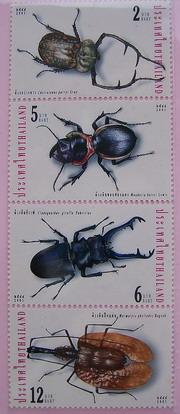 แสตมป์ ชุด แมลง ปีพ.ศ.2544 ด้วงกว่างดาว ,ด้วงดินขอบทองแดง,ด้วงคีมยีราฟ,ด้วงดินปีกแผ่น