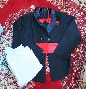 เซตเสื้อทักซิโด+เสื้อแขนยาวขาว+หูกระต่าย ผ้าพันเอวสีแดง ไซด์7ขวบ