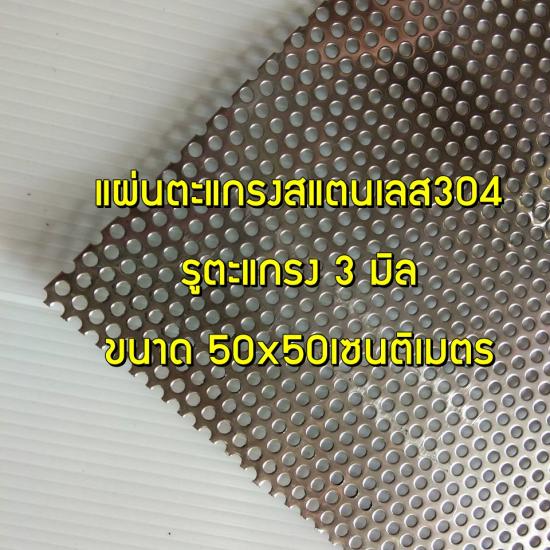 Home / All Product List / แผ่นตะแกรงสแตนเลสทำไส้ท่อสูตร ขนาด 50x50cm. รู3มิล |