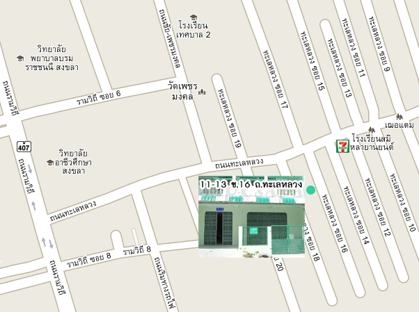 ที่อยู่ : 11-13 ซ.16 ถ.ทะเลหลวง ต.บ่อยาง อ.เมือง จ.สงขลา 90000