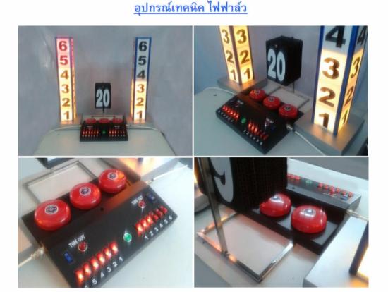 4) มีกล่องไฟฟาวล์ 2 กล่อง แสดงเวลาฟาวล์รวม (ให้แสงสว่างมองเห็นได้เด่นชัด) ขนาดกว้าง 10 ซม. ยาว 10 ซม. สูง 50 ซม