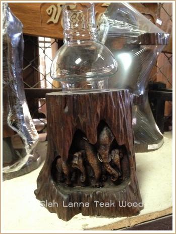 / เชิงเทียนไม้สัก 1 โคม แกะช้าง
