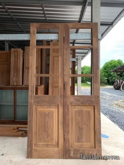 Detail : ประตูคู่งานเก่าไม้สัก ด้านล่างเป็นลูกฟักสองด้าน