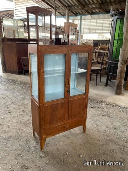 Item : ตู้โชว์ขาเก้ง ข้างทึบ บานเปิดคู่
