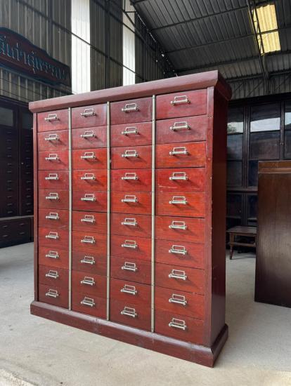 มีลิ้นชักรวม 40 ช่อง พร้อมเพจป้ายชื่อสำหรับ แต่ละลิ้นชัก เหมาะสำหรับจัดเก็บของชิ้นเล็ก ของสะสม เอกสาร หรือใช้งานในร้านค้าและโชว์รูม งานไม้สวยสไตล์คลาสสิกหายาก